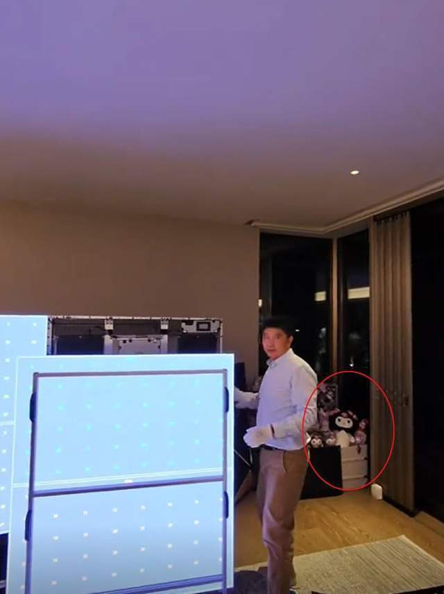 价值110万元的三星巨幕电视由192块模组拼接而成,屏幕尺寸堪比私东谈主影院,而电视旁的Hello Kitty茶几与满墙库洛米玩偶,则流表示主东谈主对二次元文化的沉溺。