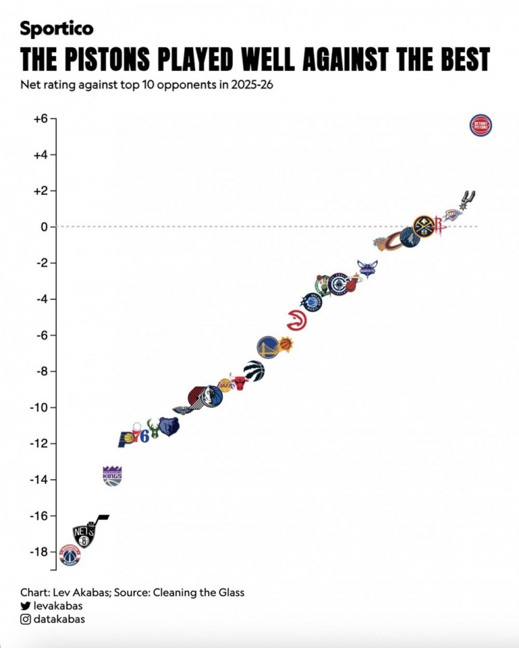 澳门十大赌城 活塞本赛季靠近战绩前10球队17胜7负!净恶果值+5.6断层领跑