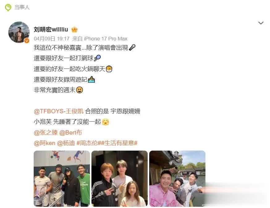 刘畊宏这条主题为“活命有星意”的动态,信息量可不小。他知道,这个周末和王俊凯沿途打了网球、吃了暖锅,还参与了《周纪行》的节目次制。合照中,26岁的王俊凯身穿失业装,顶着顺毛刘海造型亮相,与刘畊宏的犬子刘宇恩(奶名珊珊)并肩含笑,三东谈主同框画面温馨又养息。