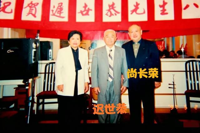 咱们当今看到的这一张珍稀老相片,更是见证了先生晚年的温顺时刻,这张相片拍摄于1997年5月2日,今日恰逢迟世恭先生的八十大寿,京剧花脸巨擘尚长荣先生作为后辈晚辈,专程赶来为老先生贺寿祝嘏,两东说念主同框留住了这张极为隐痛的经典合影。