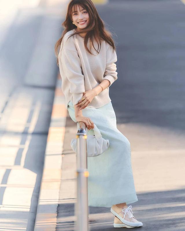 中年女东谈主穿搭,不消太介意弧线,而是要学会用微廓形或者直筒版型的穿戴,弱化弧线,强调玄虚感,落肩野心的套头毛衣,搭配直筒版型的薄荷绿长裙,就像加了层“温和滤镜”,配帆布鞋也好好意思。