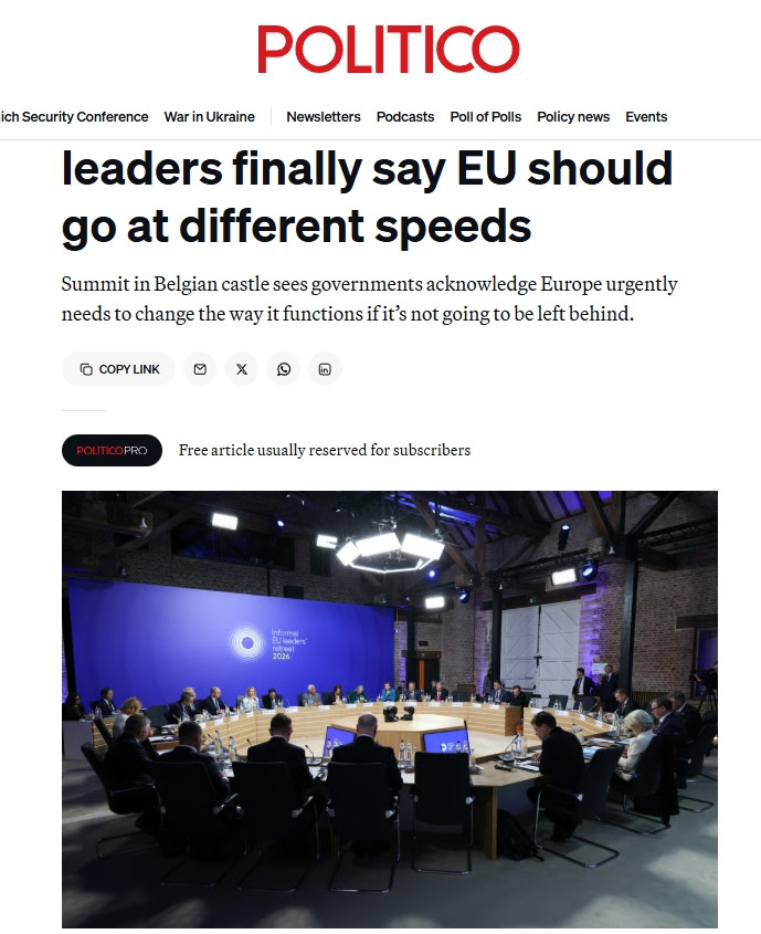 当地技术2月12日,欧盟和欧洲多国指令东谈主在比利时阿尔登比森城堡举行非雅致会议,讨论加强欧洲竞争力的议题。其中,“双速欧洲”的理念受到越来越多欧洲指令东谈主的心疼。但这让欧洲里面也产生了担忧:不再坚握协商一致上前迈进,而让部分红员国更快行动,是否意味着欧盟的“分裂”?