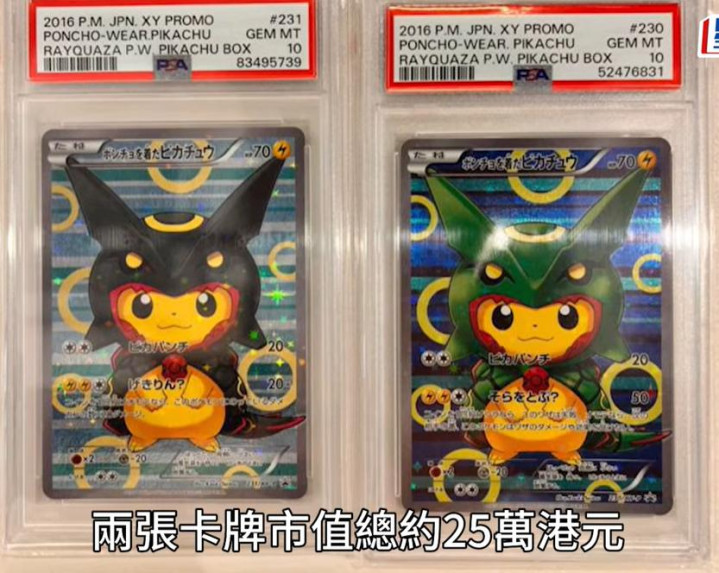 被偷的,是两张极其突出的卡“裂空座扮装皮卡丘”(PSA 10满分),售价25万港元。